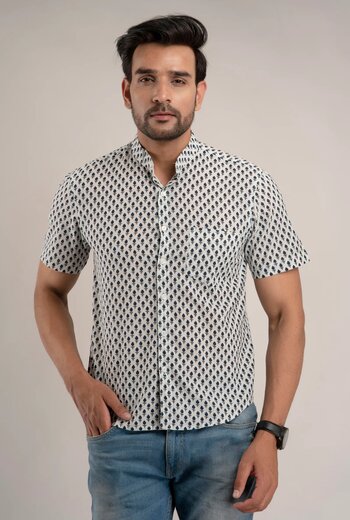 A Sanganeri print shirt for men showcases the rich heritage of Rajasthan through intricate floral and geometric patterns. Known for their elegance and softness, Sanganeri print shirts are ideal for casual wear, office outings, and festive gatherings. Swadeshi Click brings these traditional prints into modern styling, making them perfect for today’s fashion-conscious men.